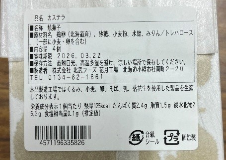 このたび、弊社が製造しております、「白いカステーラ」の一部におきまして、本来、賞味期限を